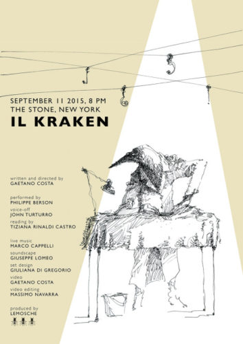 Together they have set up IL KRAKEN, a multimedia performance featuring actor John Turturro, premiered in New York at The Stone during Marco Cappelli’s residency in September 2015.